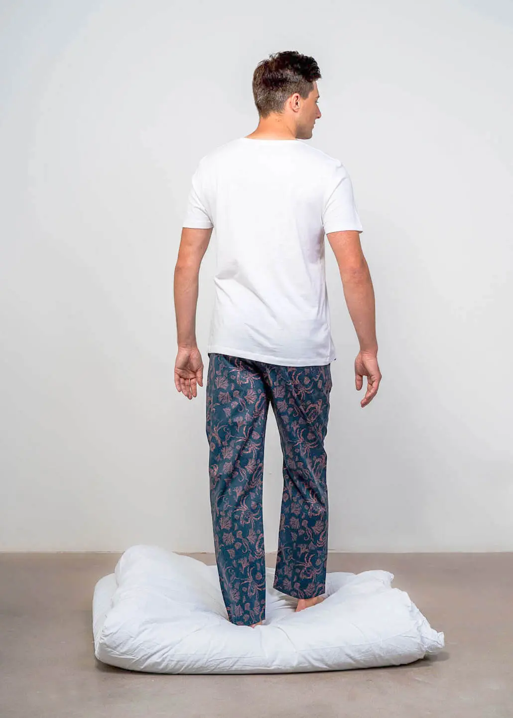 This thoughtfully crafted pyjama set includes relaxed fit men’s pyjama bottoms featuring an exclusive hand-drawn print, paired with an organic cotton pyjama T-shirt with subtle stretch and a clean thin collar band. Made from 100% premium lightweight cotton, this set ensures exceptional breathability — keeping you cool in summer and comfortably warm in winter.